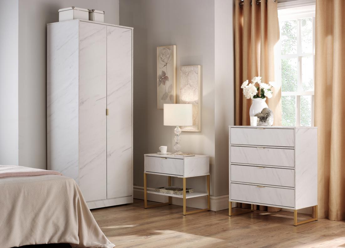The Diego bedroom furniture pack is a contemporary range designed for modern living. The metal handle design gives this range a sleek modern look. Quality ready-built bedroom furniture direct from a UK manufacturer. Durable scratch resistant vinyl. High quality long lasting drawer runners on all units with metal drawer handles.