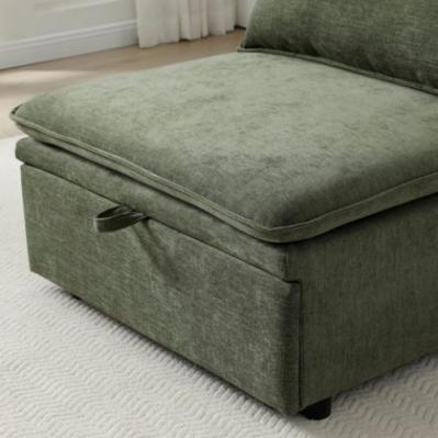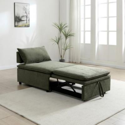 Description: The Rhoads pull-out pop-up sofabed chair is a neat and compact single-sleeper solution. It features an adjustable backrest and a removable back cushion, finished with elegant piping detail for a refined look. This single-seater sofabed is available in two chenille fabric options: olive and taupe.