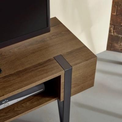 Description: Add industrial charm to your space with this TV unit, featuring a wide top for TVs up to 65 inches. A push-touch drawer and open shelf provide practical storage, while hairpin legs add a modern edge.