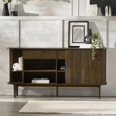 Description: Arya Sideboard: dark oak elegance meets modern design. Sliding doors, drawers, and shelves offer smart storage, while Nordic tapered legs add mid-century charm—perfect for any living or dining room.