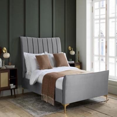 Description: The Clover Bed features a beautifully shaped headboard with plush cushioning, designed to provide exceptional comfort while relaxing. Elegant pleated detailing enhances its refined appearance, while the striking gold feet add a bold and sophisticated statement to any bedroom. The sprung slatted base offers natural support and adapts to pressure for improved comfort and durability.