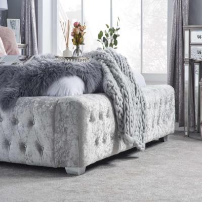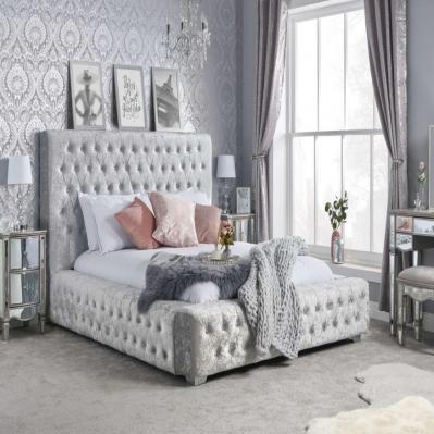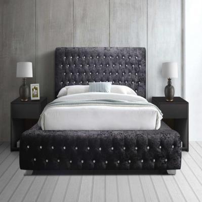 Description: The Grande ambassador bed exuberates a majestic and royal aura with its beautifully diamond buttoned headboard, upholstered side panels and footboard to match.
