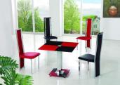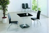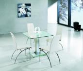 Description: This stylish dining table is ultra-contemporary and adds the perfect touch to any modern home. Constructed of a tempered safety glass top and a scratch-resistant chrome leg, the Jet Dining Table offers rugged construction while maintaining a sleek look.